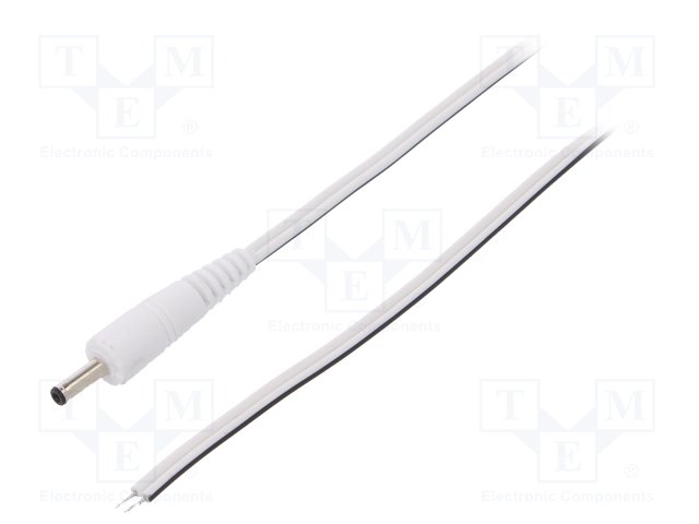 Кабель; провода,вилка DC 1,3/3,5; прямой; 0,5мм2; белый; 1,5м