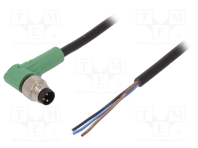 Соединительный кабель; M12; PIN: 3; угловой; 3м; вилка; 250ВAC; 4А |