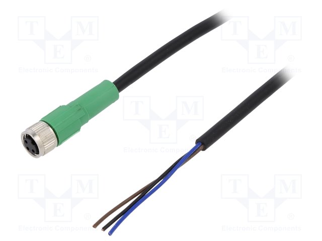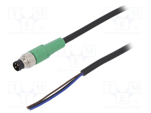Соединительный кабель; M8; PIN: 3; прямой; 5м; вилка; 250ВAC; 4А |