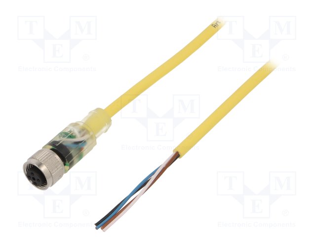 Соединительный кабель; M12; PIN: 4; прямой; 5м; вилка; 250ВAC; 4А |