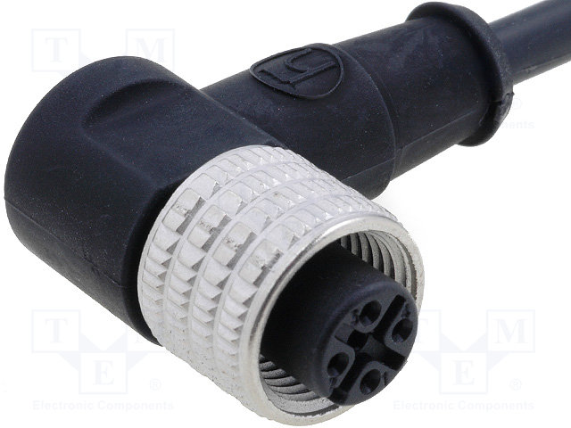 Соединительный кабель; M12; PIN: 4; угловой; 5м; вилка; 250ВAC; 4А |