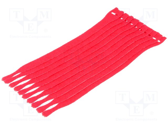 Стяжка-липучка; L: 200мм; W: 12,5мм; красный; 10шт; Øмакс: 60мм