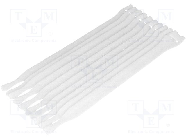 Стяжка-липучка; L: 200мм; W: 12,5мм; белый; 10шт; Øмакс: 60мм