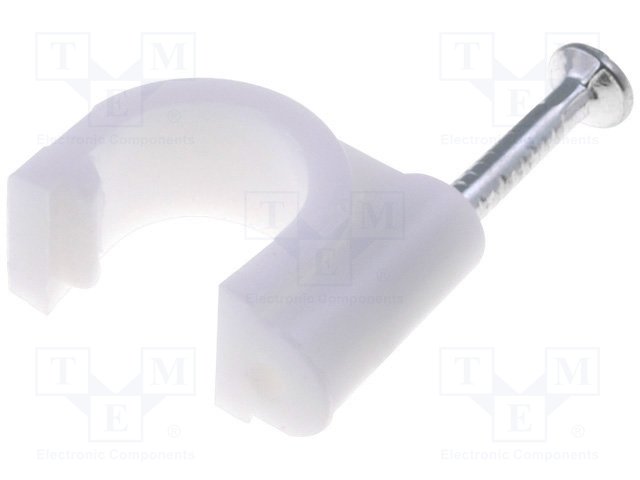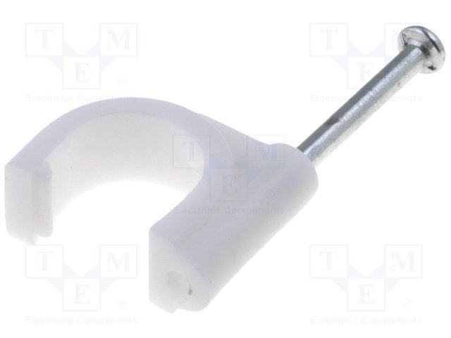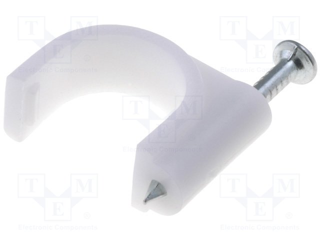 Держатель; белый; Применение: на круглый провод; 100шт; с гвоздем