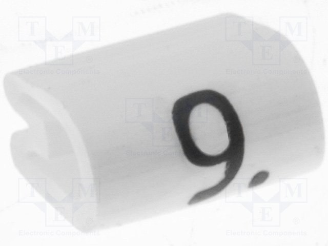 Маркер для проводов и кабеля; Маркировка: 9; 2,5÷4мм; ПВХ; белый