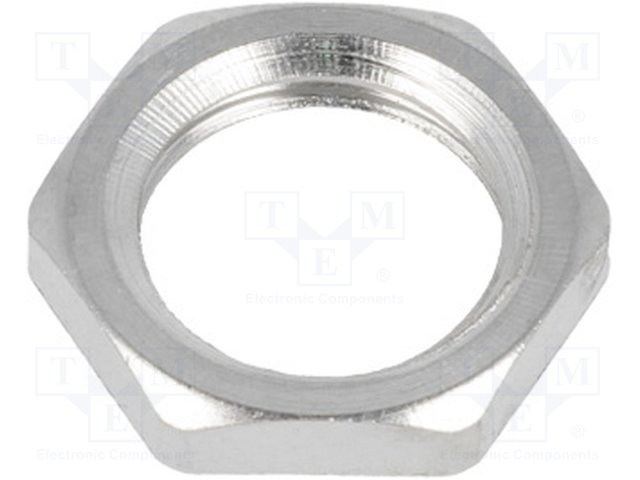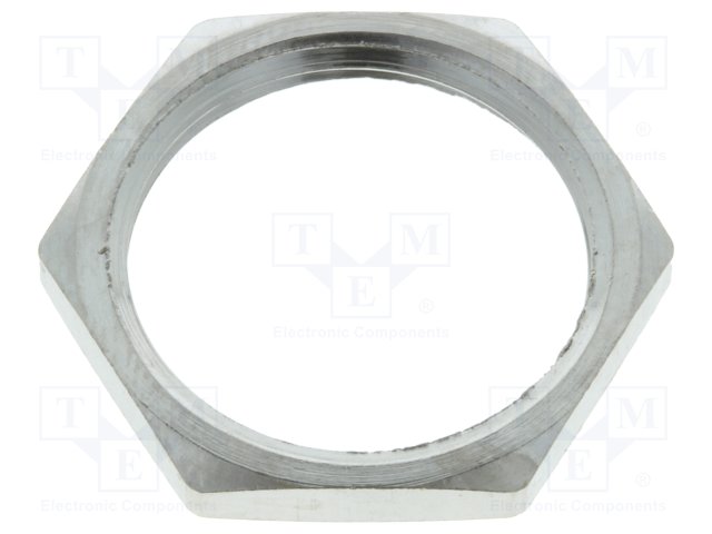 Гайка; M25; латунь; никель; D: 3,5мм; Ключ: 30мм; Резьба: метрическая |