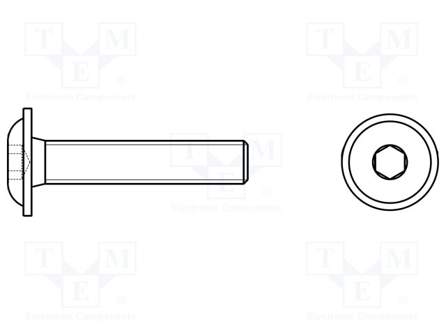 Винт; с юбкой; M10x20; Головка: сферическая; шестигранный; HEX 6мм