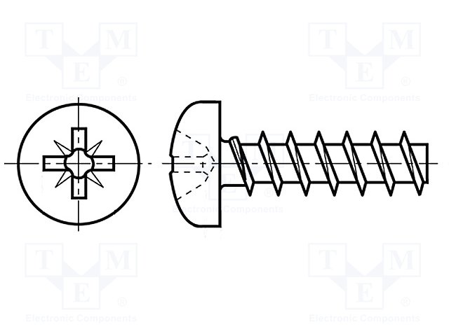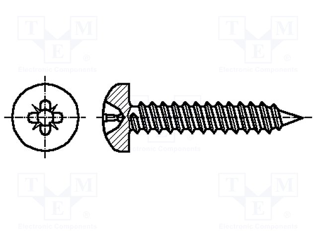 Винт; для термопластов; 3,5x16; Головка: сферическая; Phillips