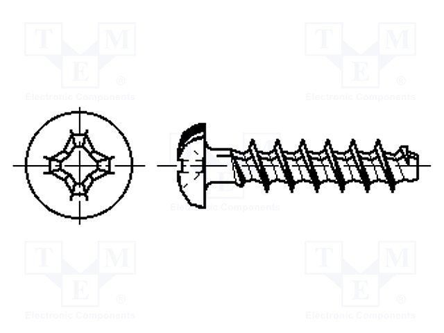 Винт; для термопластов; 3,5x12; Головка: сферическая; Phillips