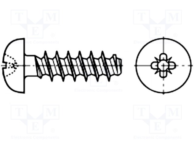 Винт; для термопластов; 1,4x4; Головка: сферическая; Phillips