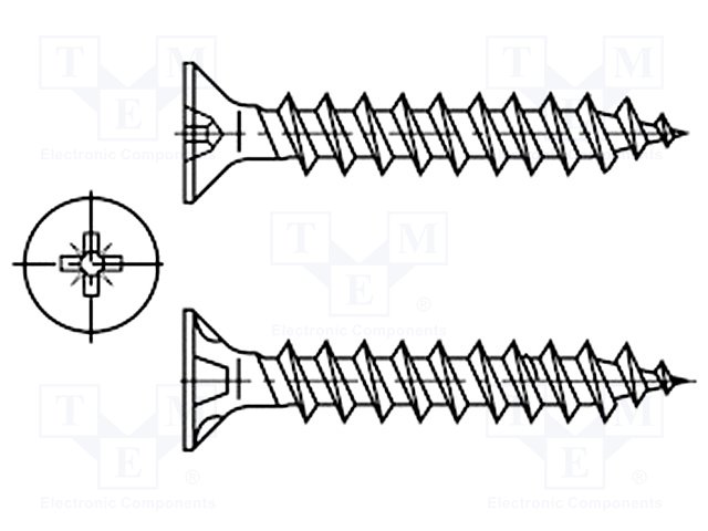 Винт; для термопластов; 4x25; Головка: потайная; Pozidriv; сталь |