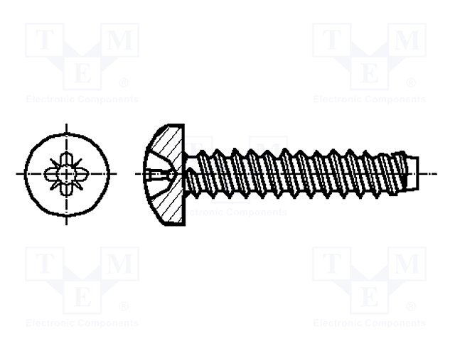 Винт; для термопластов; 4x12; Головка: сферическая; Phillips; цинк