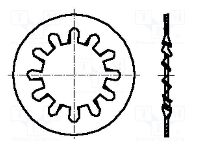 Шайба; зубчатая (внешние зубцы); M3; D=6мм; h=0,4мм; DIN: 6797A