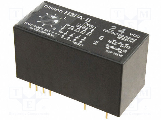 Реле времени; 0,1мин÷10ч; 4PDT; 250ВAC/3A; 24ВDC; панелька; PIN: 14 |