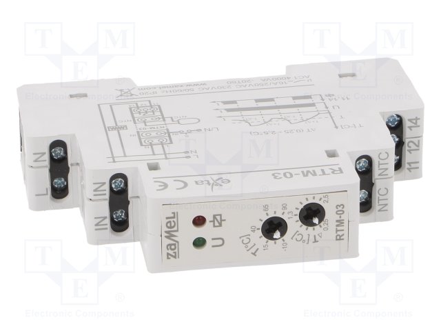 Модуль: регулятор; NTC; температура; DIN; 5÷40°C; -20÷60°C; 230ВAC |