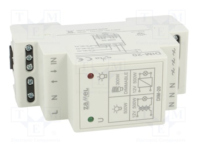 Диммер; IP20; 230ВAC; DIN; -20÷45°C; 90x35x66мм; 500Вт; 10мА |