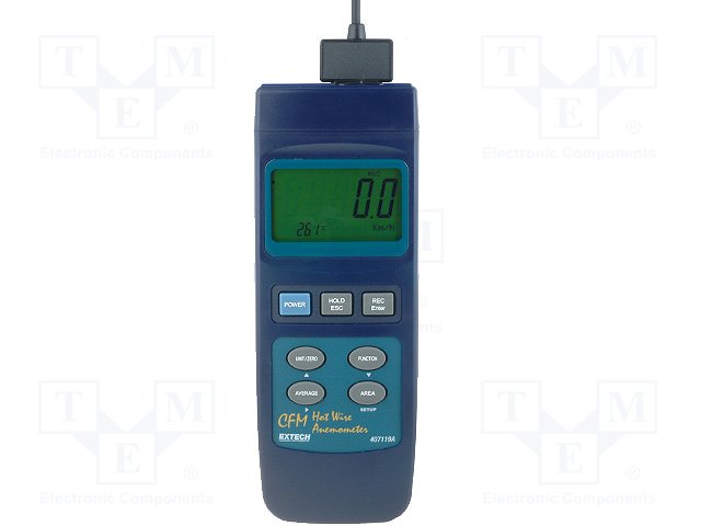 Термоанемометр; 2x LCD; 0,4÷25м/с; 0,01÷99,99м3/с; 0÷50°C |