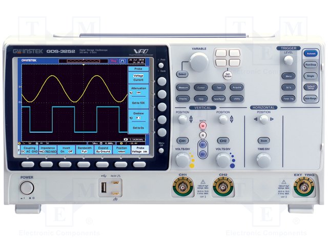 Осциллограф: цифровой; Частота: ≤200МГц; Каналы: 2; 1Мвыб; Вилка: EU