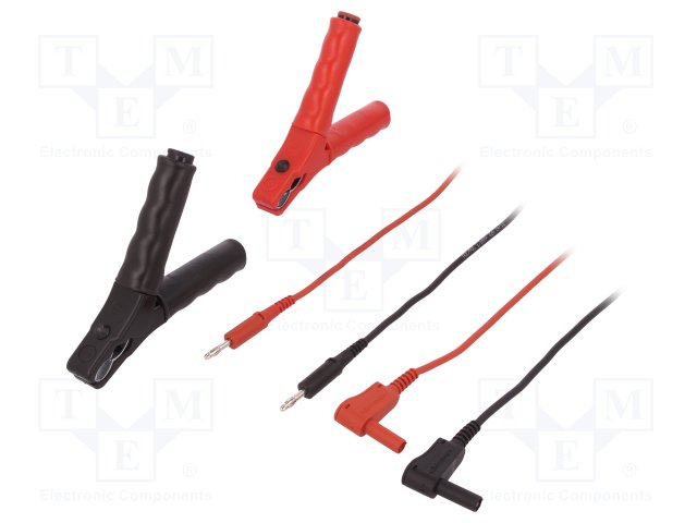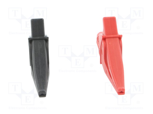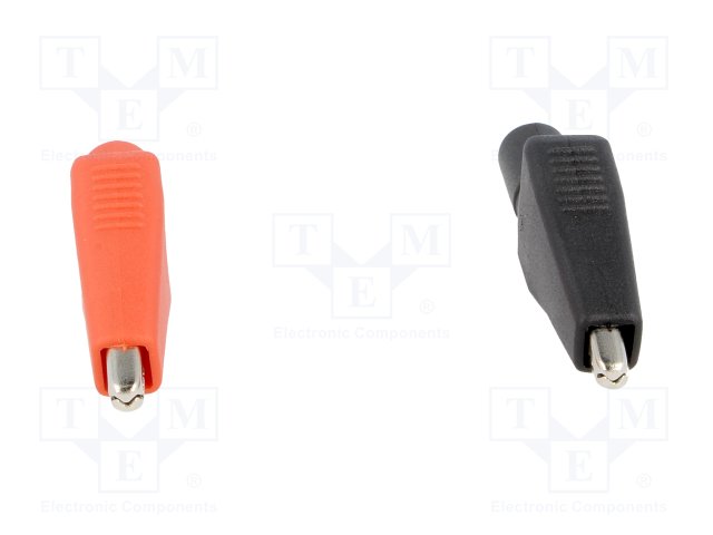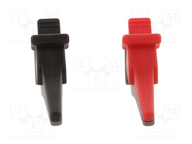 Зажим "крокодил"; 10А; 1кВDC; черный и красный; Контакты: сталь |