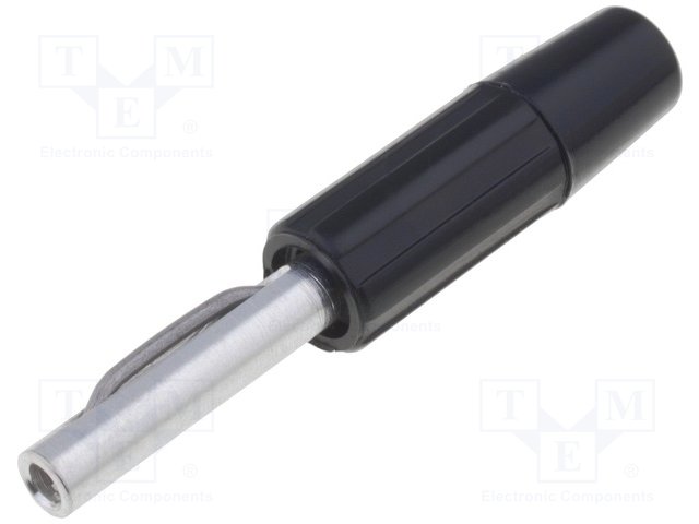 Вилка; "банан" 4мм; 10А; 50ВDC; черный; 5,5мм2; Контакты: латунь |