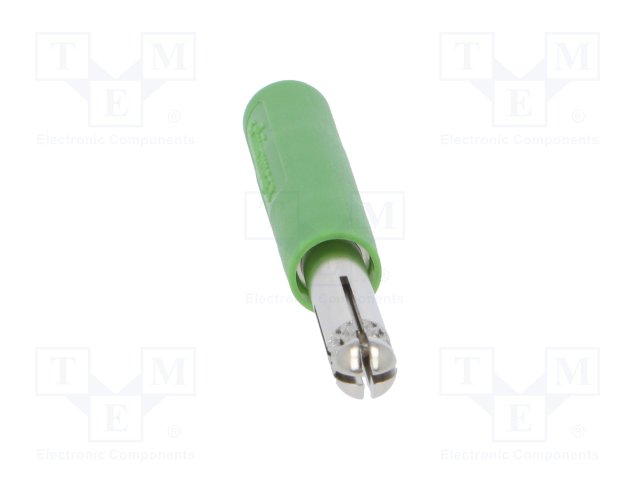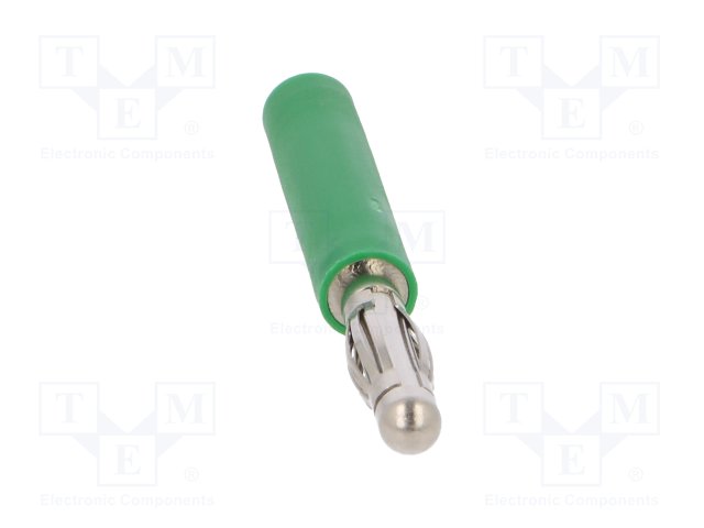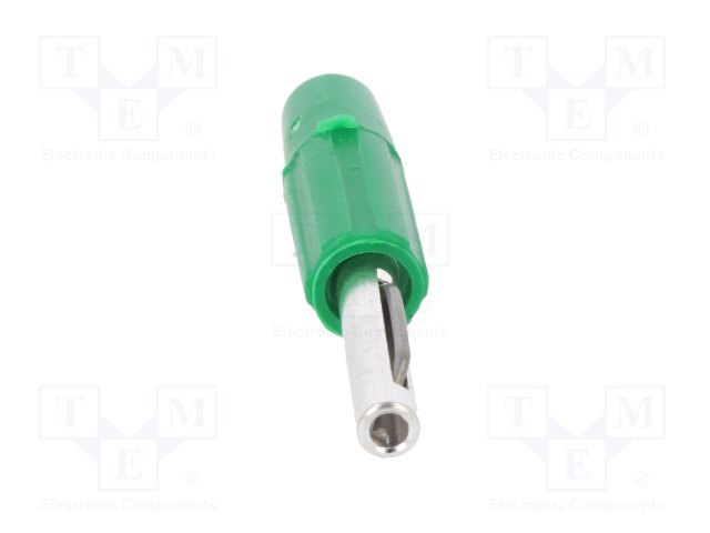 Вилка; "банан" 4мм; 10А; 50ВDC; зеленый; 5,5мм2; Контакты: латунь |