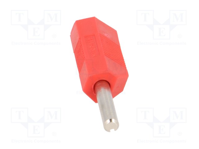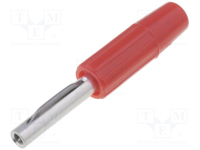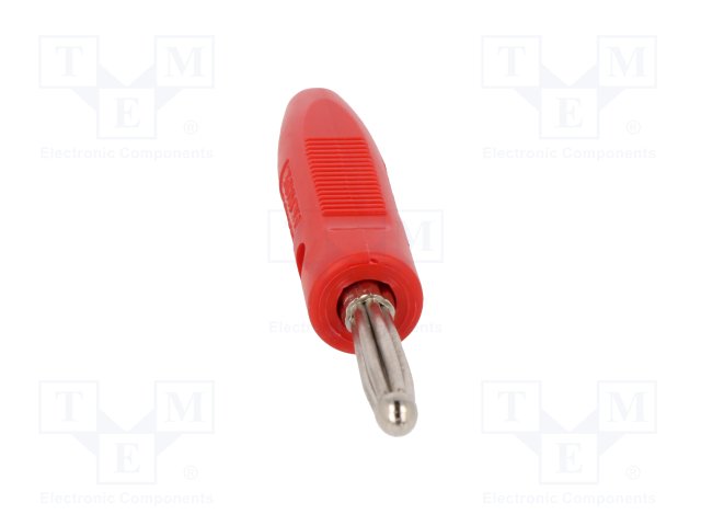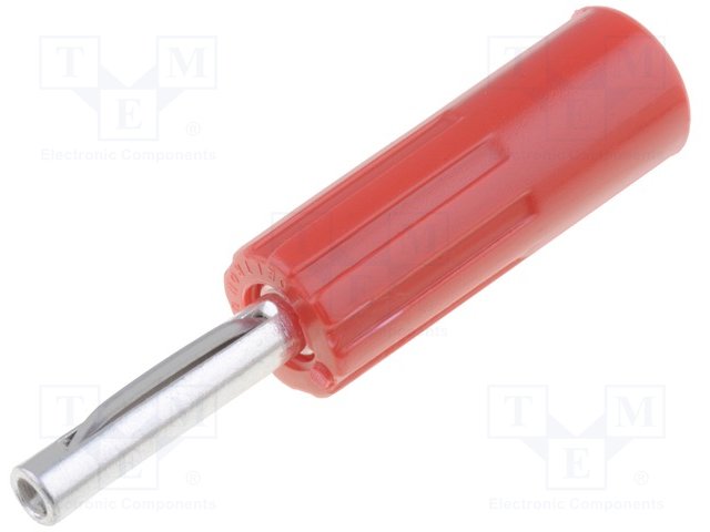 Вилка; "банан" 4мм; 16А; 50ВDC; красный; 2,5мм2; Контакты: латунь |