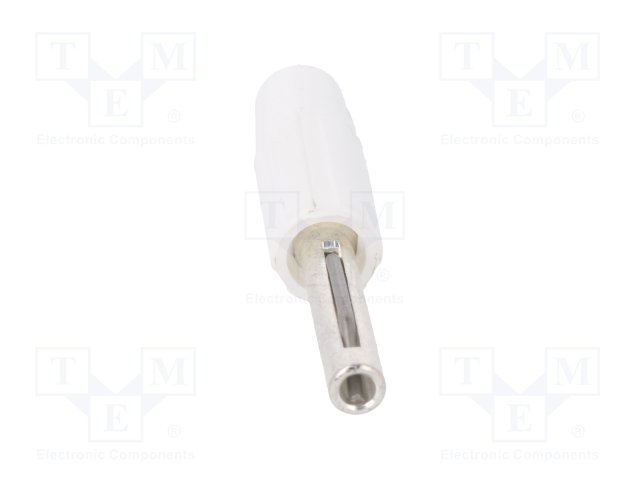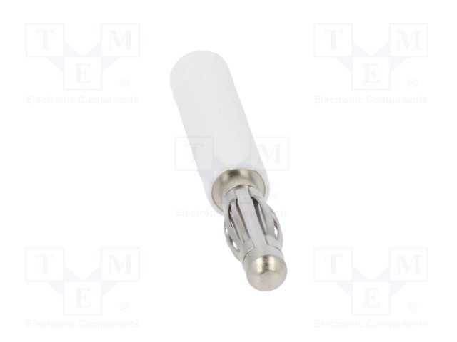 Вилка; "банан" 4мм; 10А; 50ВDC; белый; 5,5мм2; Контакты: латунь |
