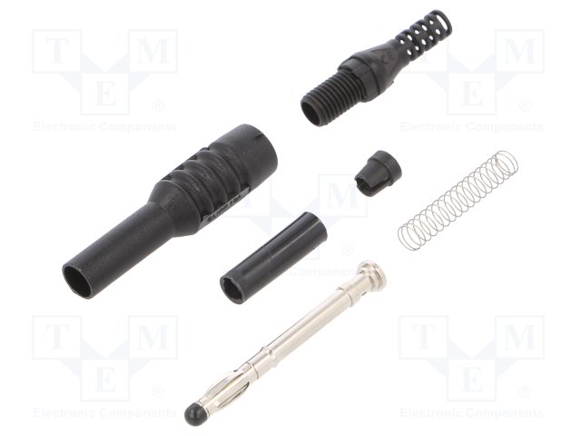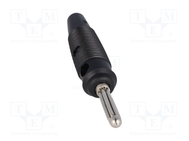 Вилка; "банан" 4мм; 10А; 1кВAC; черный; с передвижной крышкой