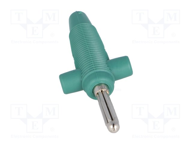 Вилка; "банан" 4мм; 32А; 70ВDC; зеленый; с осевым гнездом 4мм