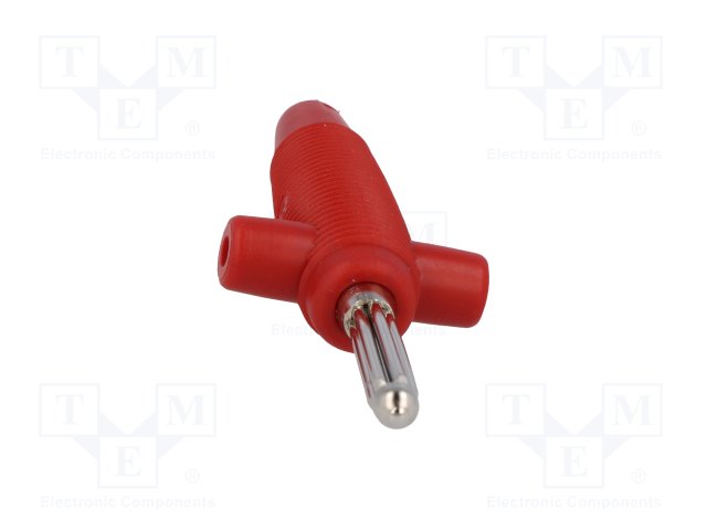 Вилка; "банан" 4мм; 16А; 70ВDC; красный; с осевым гнездом 4мм