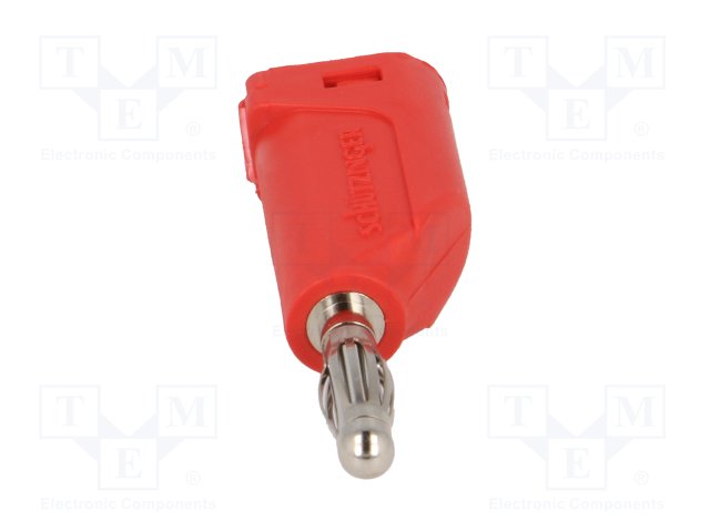 Вилка; "банан" 4мм; 16А; красный; с осевым гнездом