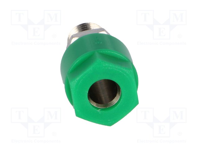 Гнездо; "банан" 4мм; 36А; 60ВDC; Отв: Ø8мм; зеленый; никелированные