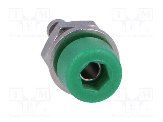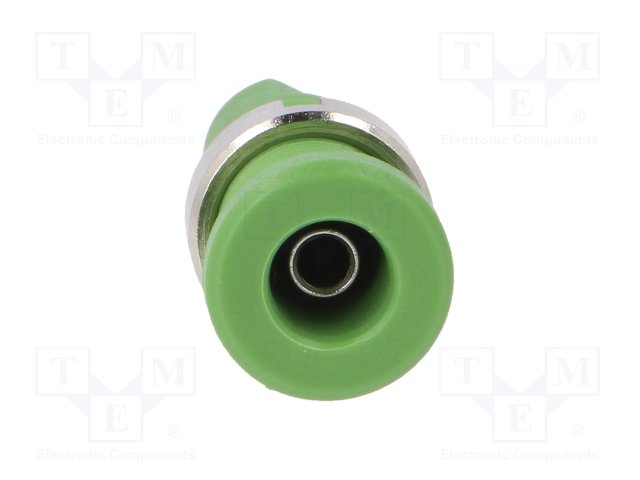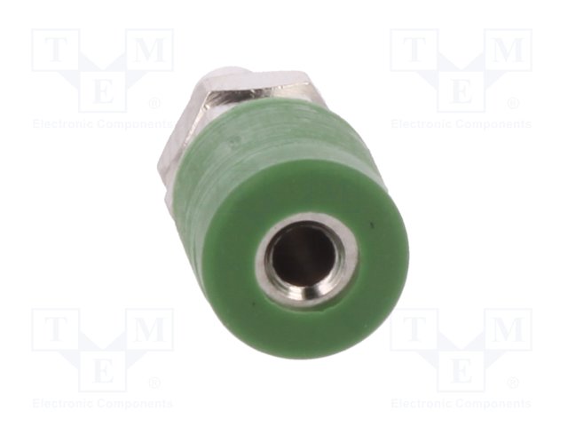 Гнездо; "банан" 2мм; 10А; 70ВDC; 24,5мм; зеленый; Монтаж: на панель |
