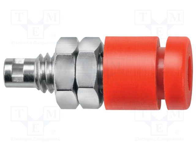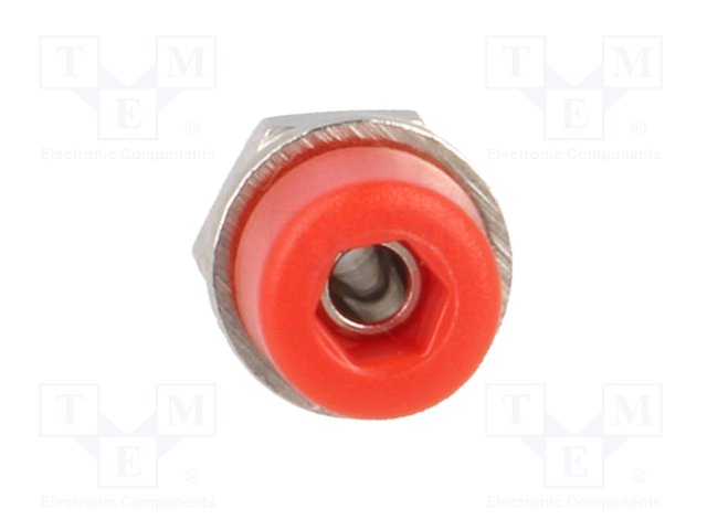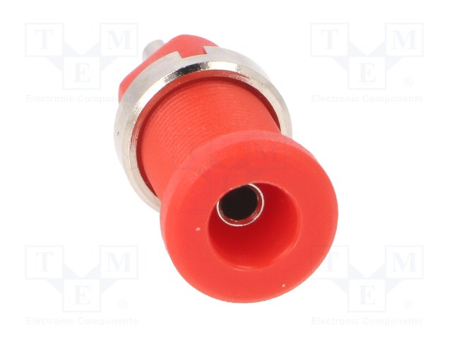 Гнездо; "банан" 2мм; 10А; 70ВDC; 24,5мм; красный; Монтаж: на панель |