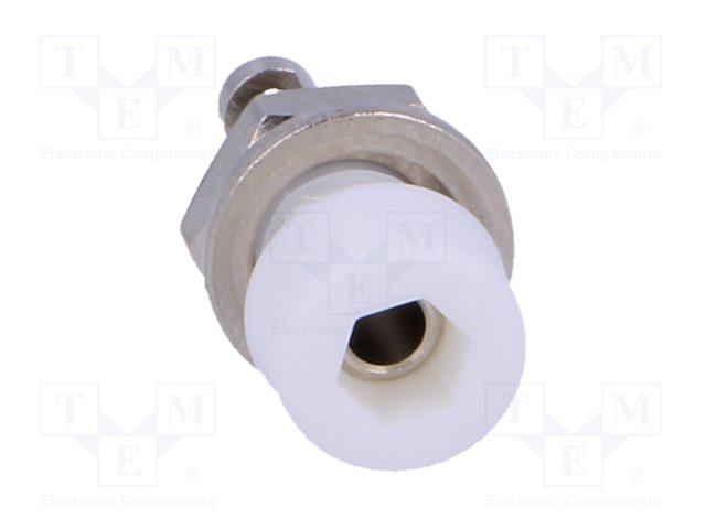 Гнездо; "банан" 2мм; 10А; 70ВDC; 24,5мм; белый; Монтаж: на панель |