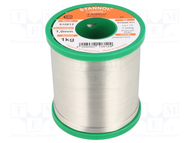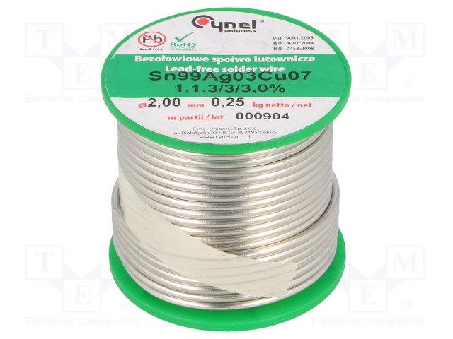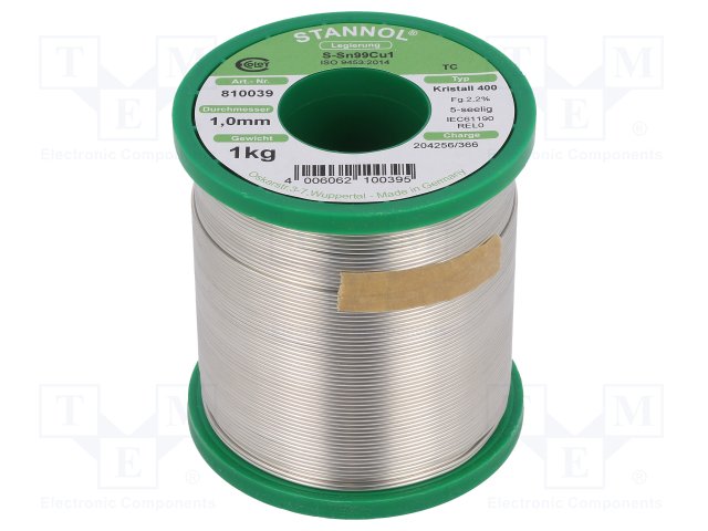 Проволочный припой; Sn99Cu1; 1мм; 1кг; не содержит свинца; 227°C
