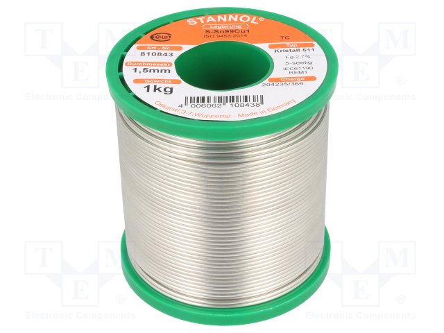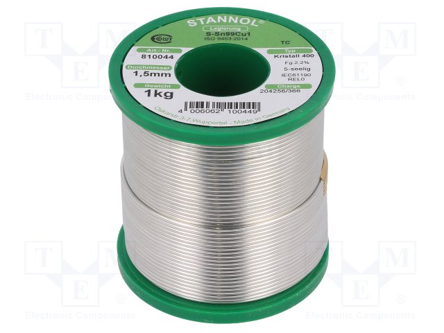 Проволочный припой; Sn99Cu1; 1,5мм; 1кг; не содержит свинца