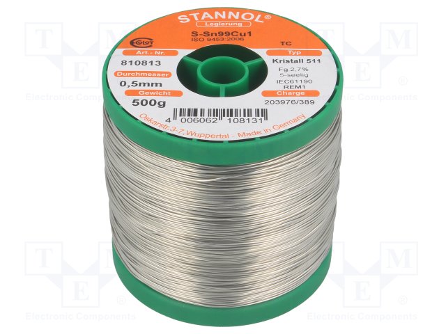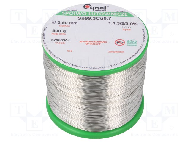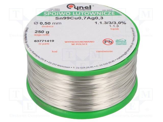 Проволочный припой; Sn99Cu1; 500мкм; 0,5кг; не содержит свинца