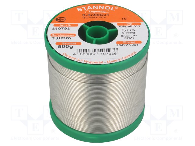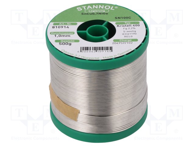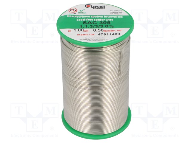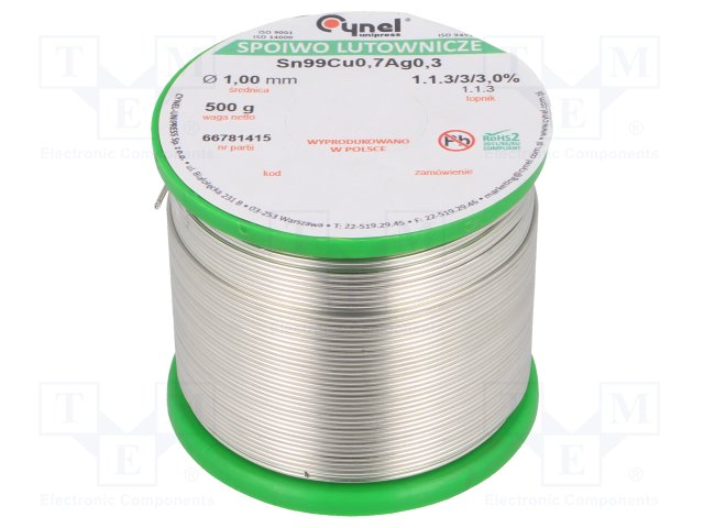 Проволочный припой; Sn99Cu1; 1мм; 0,5кг; не содержит свинца