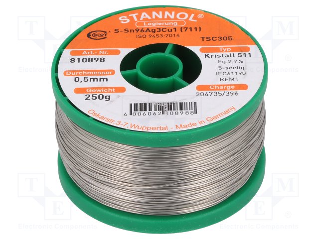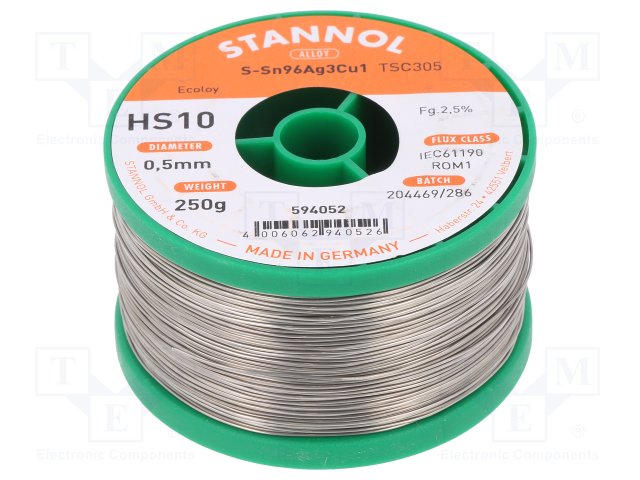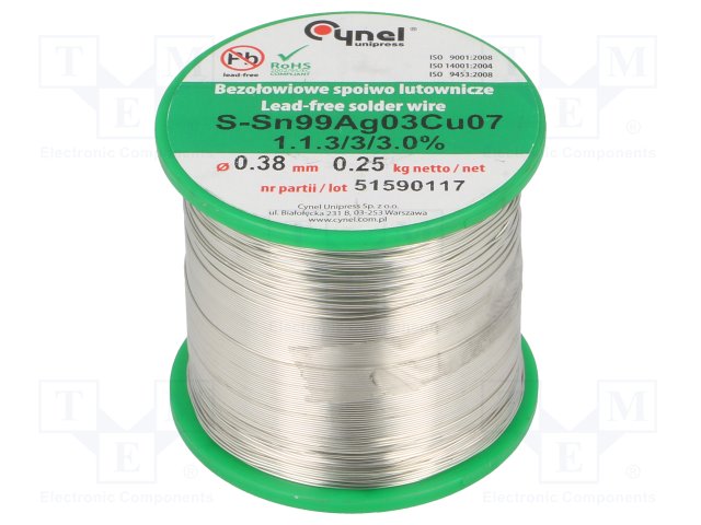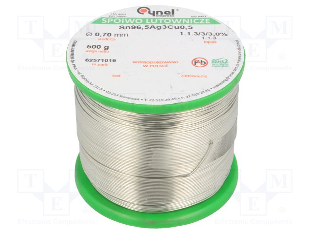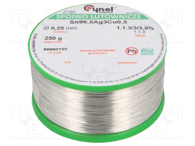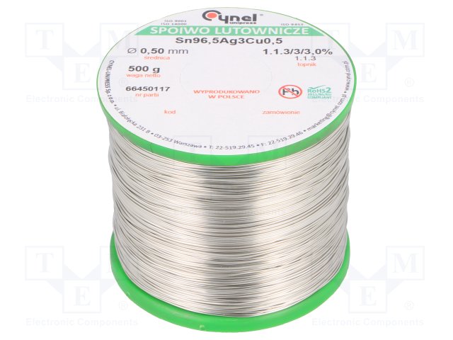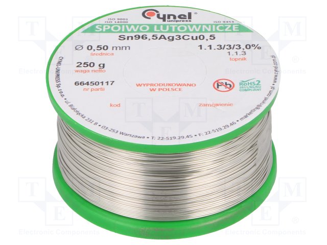 Проволочный припой; Sn96Ag3Cu1; 0,5мм; 0,25кг; Упаковка: катушка