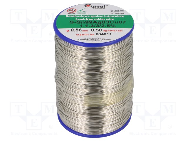 Проволочный припой; Sn99Ag0,3Cu0,7; 560мкм; 500г; 216÷227°C