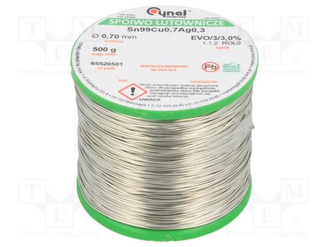 Проволочный припой; Sn99Cu1; 700мкм; 0,5кг; не содержит свинца