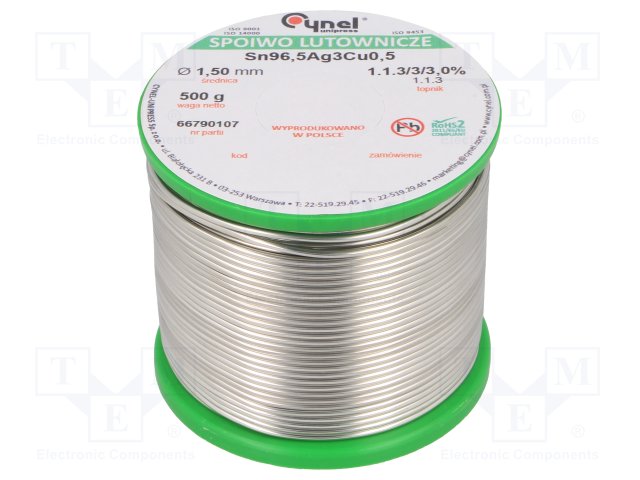 Проволочный припой; Sn96,5Ag3Cu0,5; 1,5мм; 500г; 217÷219°C