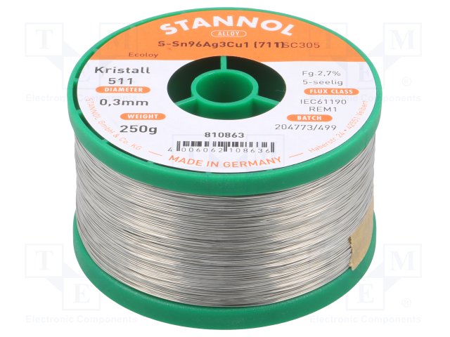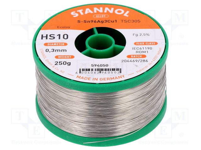 Проволочный припой; Sn96Ag3Cu1; 0,3мм; 0,25кг; Упаковка: катушка