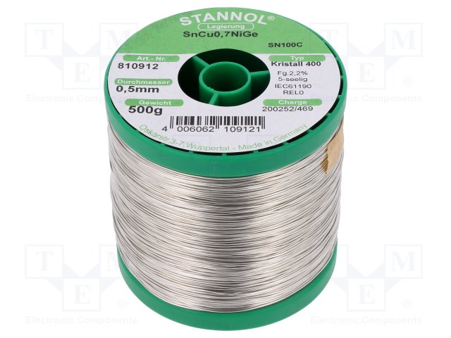 Проволочный припой; Sn99,3Cu0,7+NiGe; 0,5мм; 0,5кг; 227°C