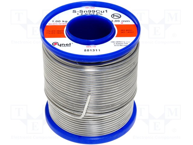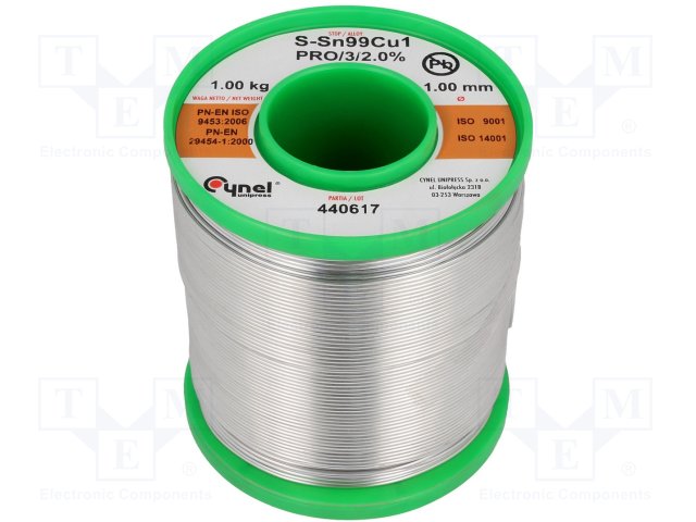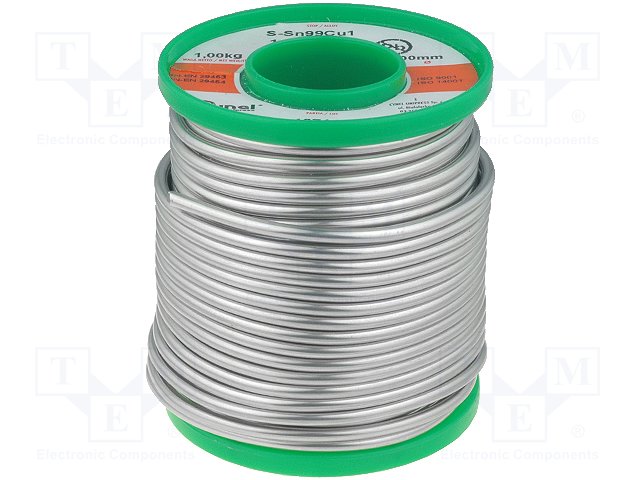 Проволочный припой; Sn99,3Cu0,7; 1мм; 1кг; не содержит свинца