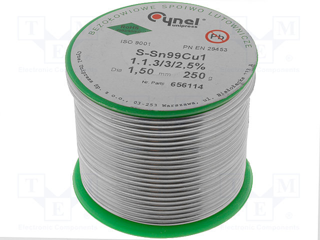 Проволочный припой; Sn99,3Cu0,7; 1,5мм; 0,25кг; Упаковка: катушка