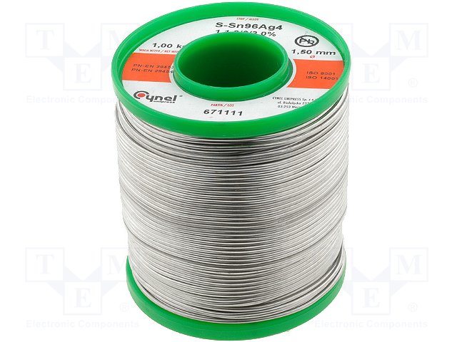 Проволочный припой; Sn99,3Cu0,7; 1,5мм; 1кг; не содержит свинца