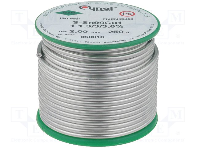 Проволочный припой; Sn99,3Cu0,7; 2мм; 0,25кг; не содержит свинца