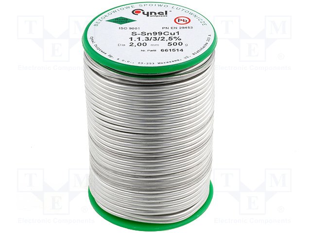 Проволочный припой; Sn99,3Cu0,7; 2мм; 0,5кг; не содержит свинца